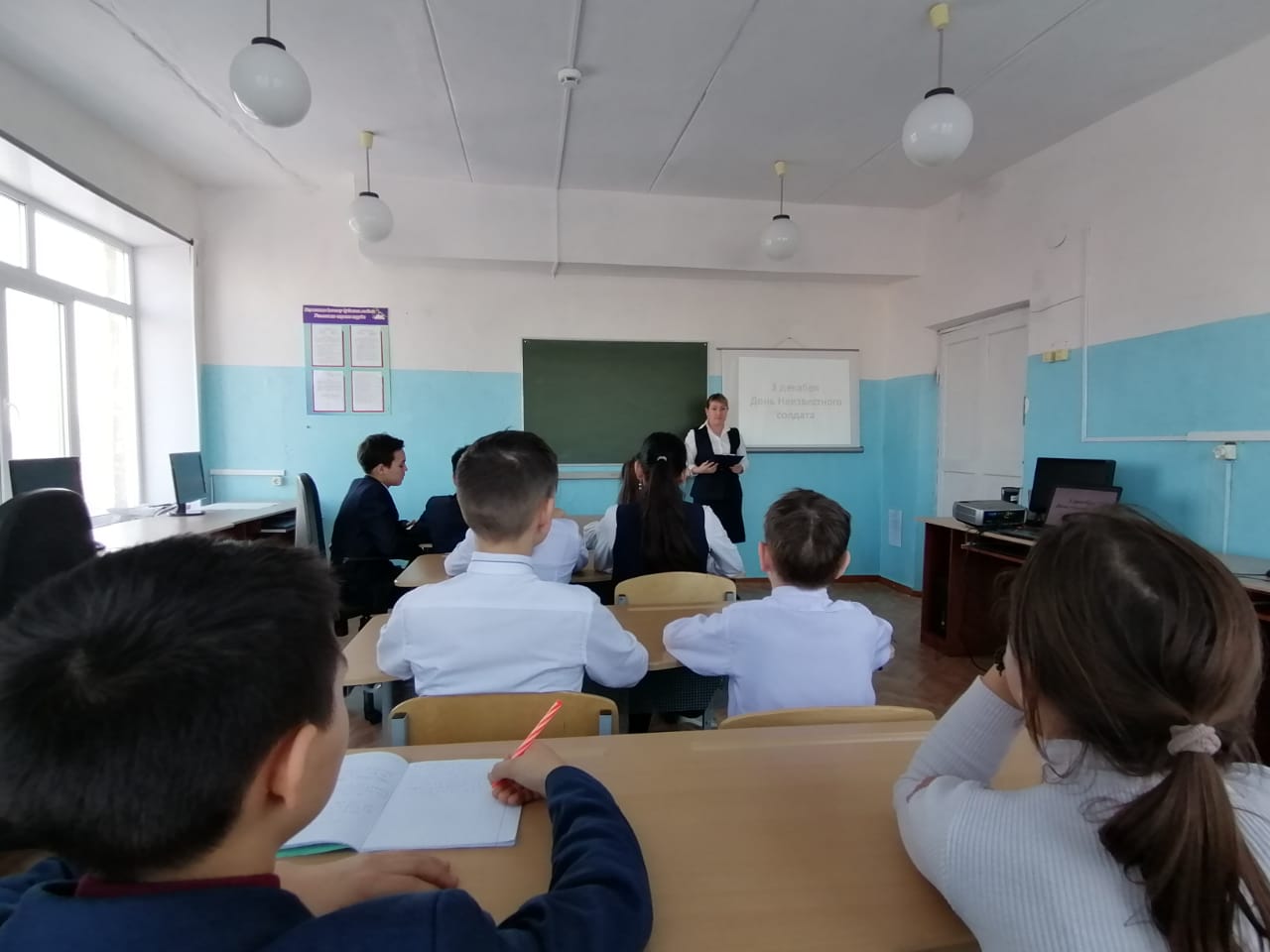 День Неизвестного солдата – это сравнительно новая памятная дата в российской истории, которая отмечается ежегодно 3-го декабря. Этот день призван увековечить память, воинскую доблесть и бессмертный подвиг советских и российских воинов, которые погибли во время боевых действий, чьи имена остались неизвестными. Советником директора по воспитанию и взаимодействию с детскими общественными объединениями совместно с учащимися 6-7 классов проведено внеклассное мероприятие Урок Памяти «3 декабря – День Неизвестного солдата».В 2014 году 3 декабря объявлен как День Неизвестного солдата, поскольку именно 3 декабря 1966 года в ознаменование 25-летней годовщины разгрома немецких войск под Москвой прах неизвестного солдата был перенесен из братской могилы на 41-м км Ленинградского шоссе и торжественно захоронен в Александровском саду у Кремлёвской стены.На этом уроке ребята просмотрели видеосюжет «Неизвестный солдат».Также учащиеся возложили цветы к памятнику. Эта памятная дата – дань уважения бессмертному подвигу павших защитников Отечества, чьи имена остались неизвестными.