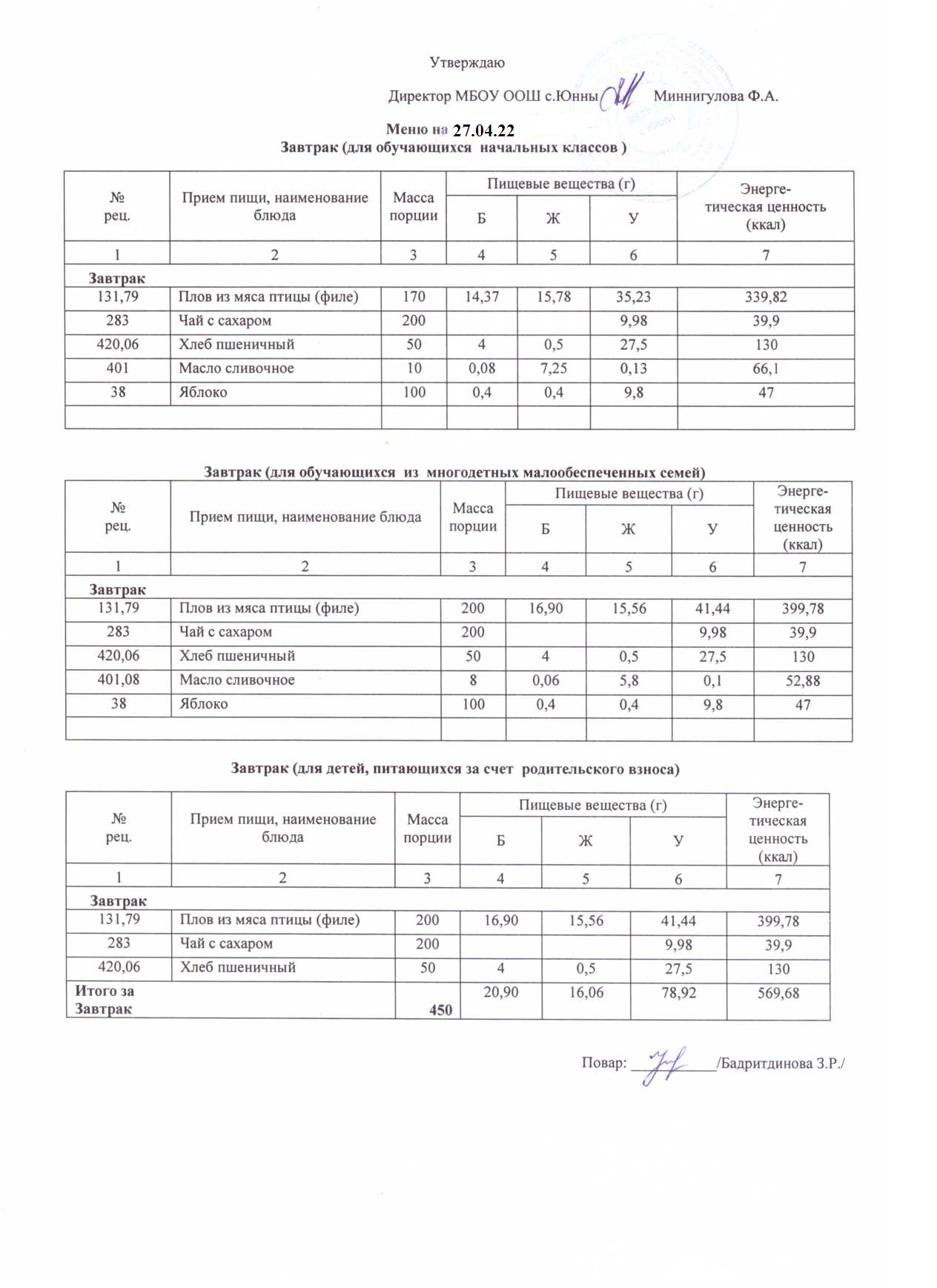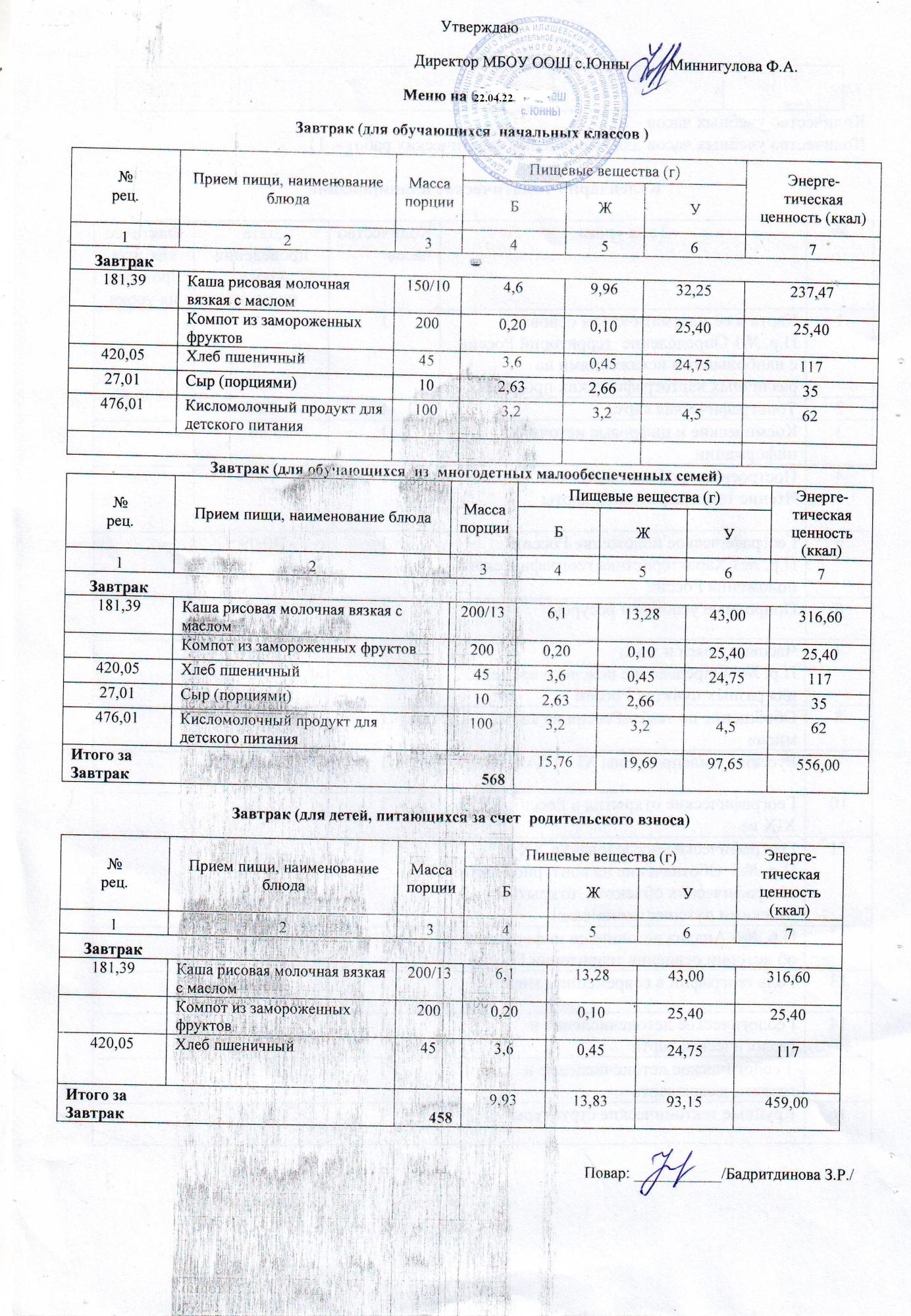 Меню 27.04.22