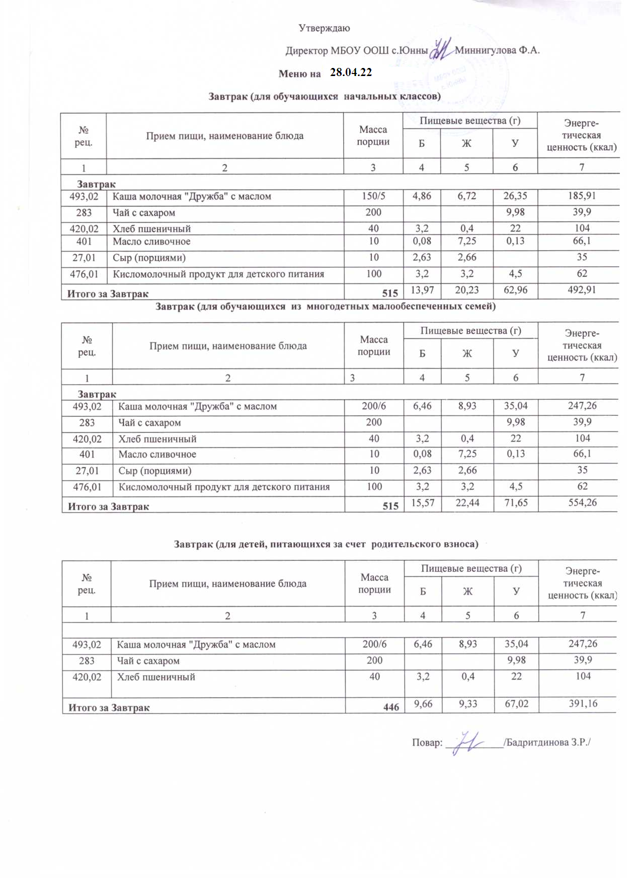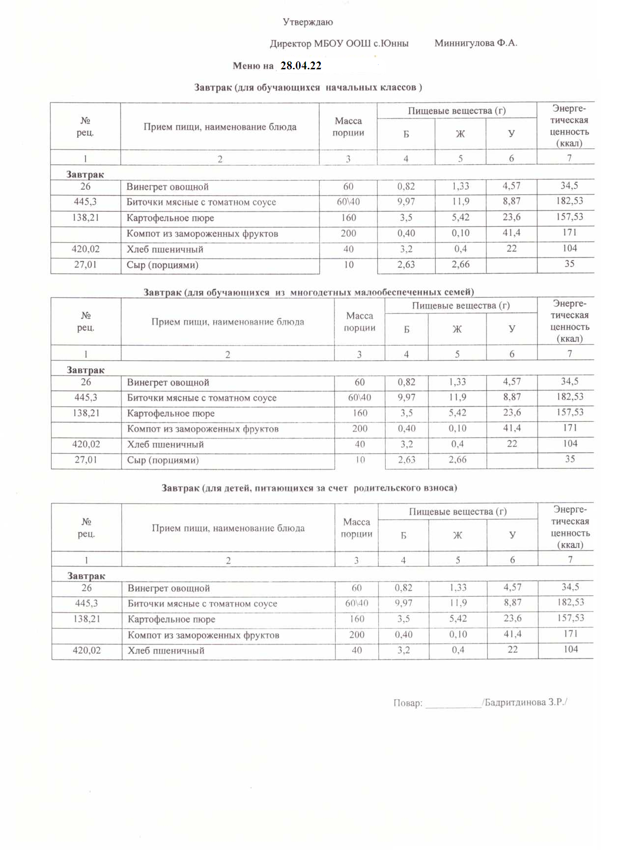 Меню 28.04.22