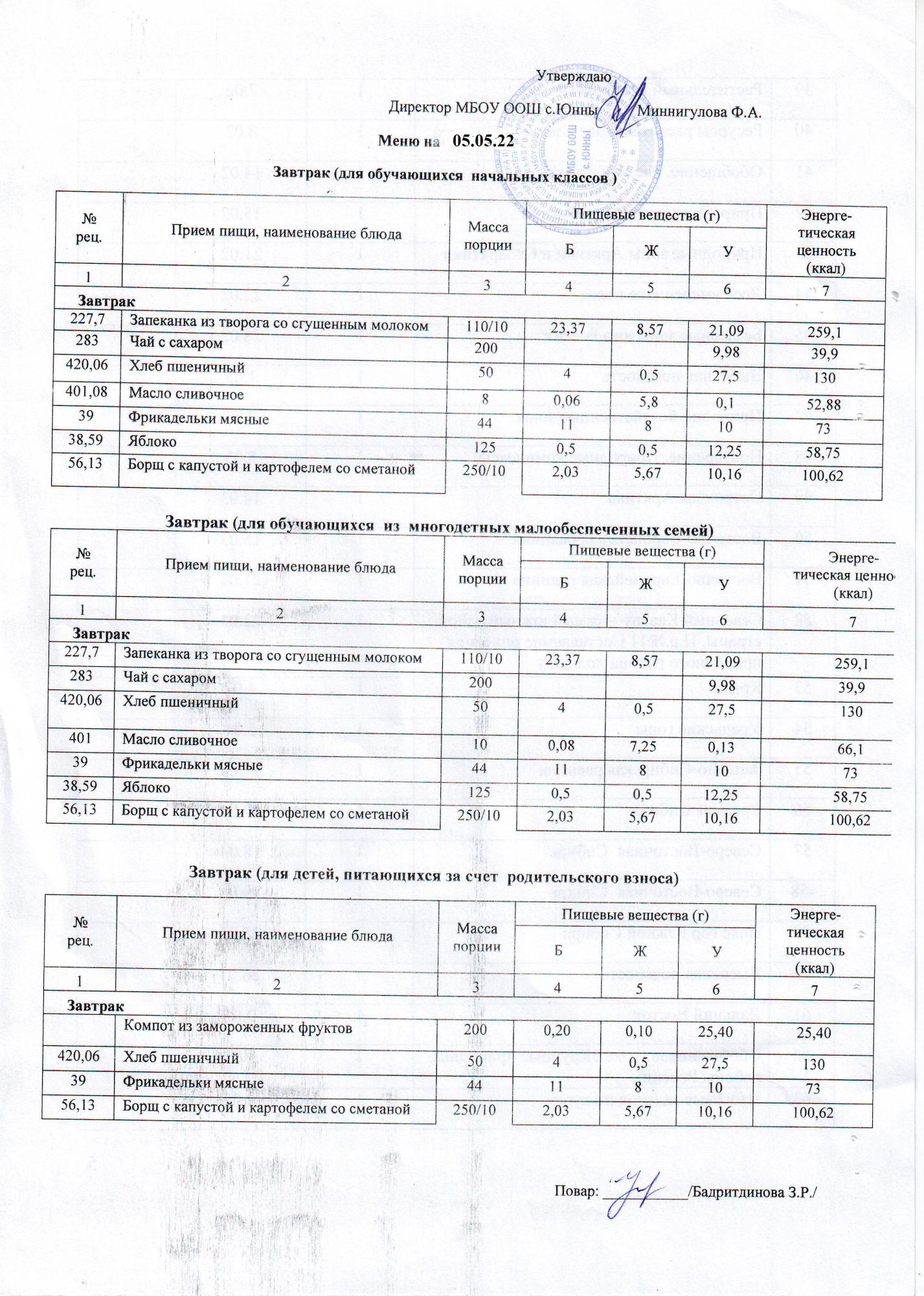 меню 05.05.2022