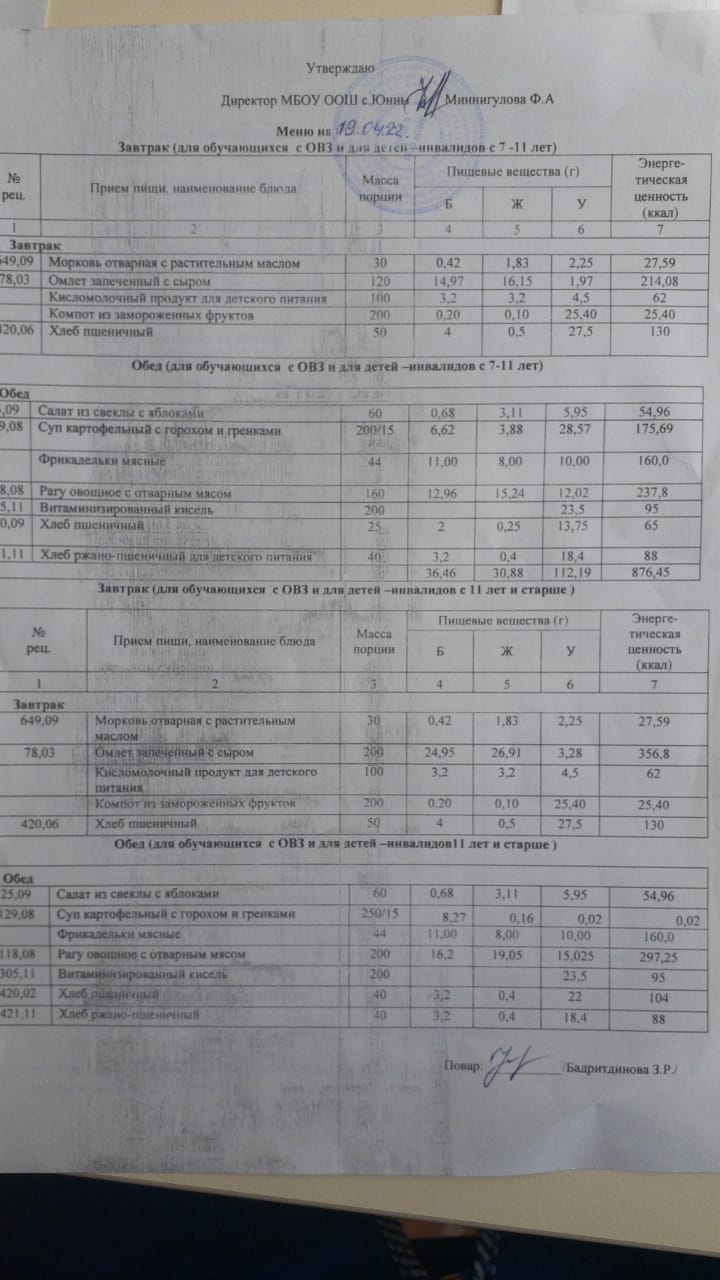 Меню ОВЗ 19.04.22