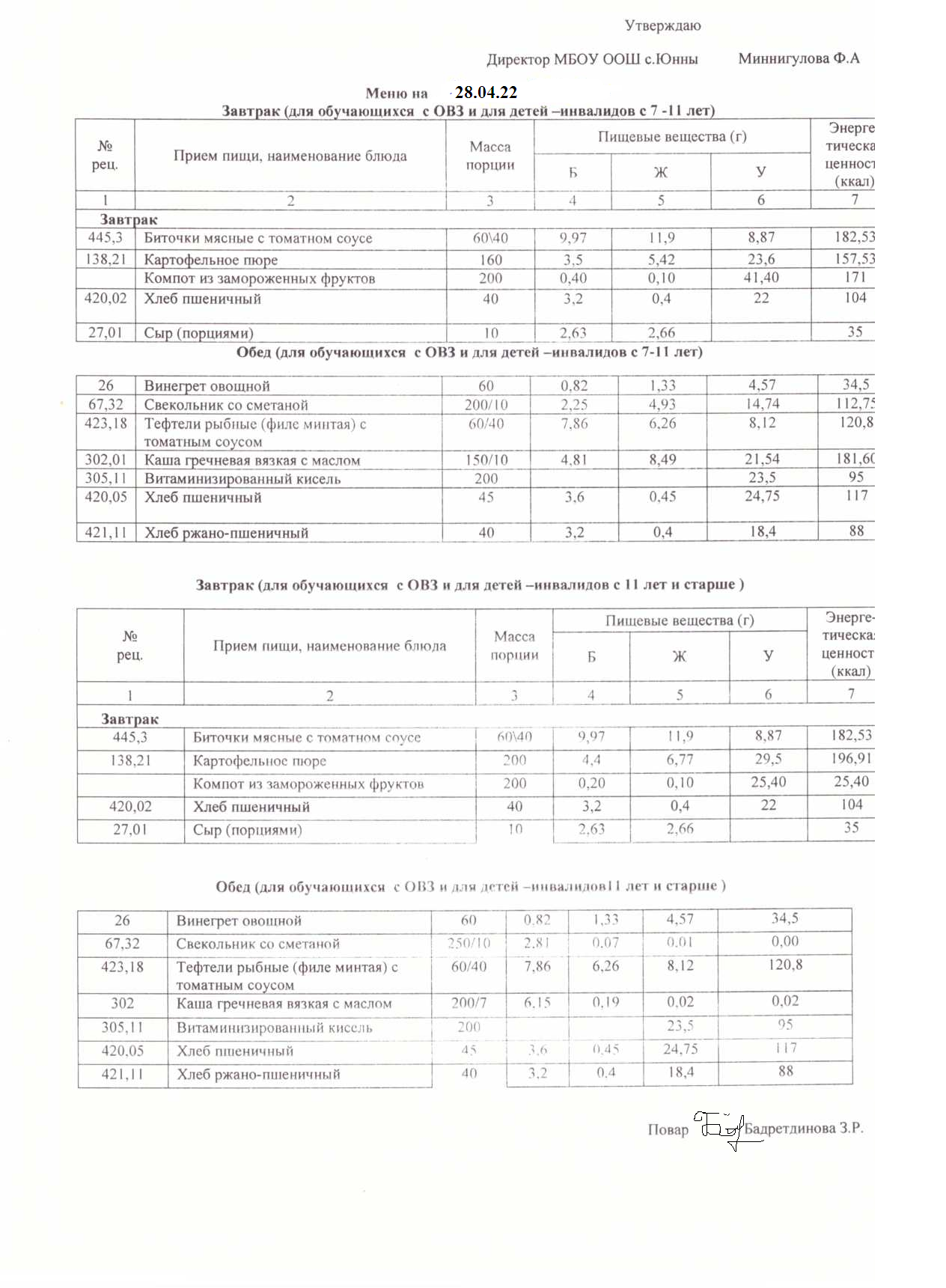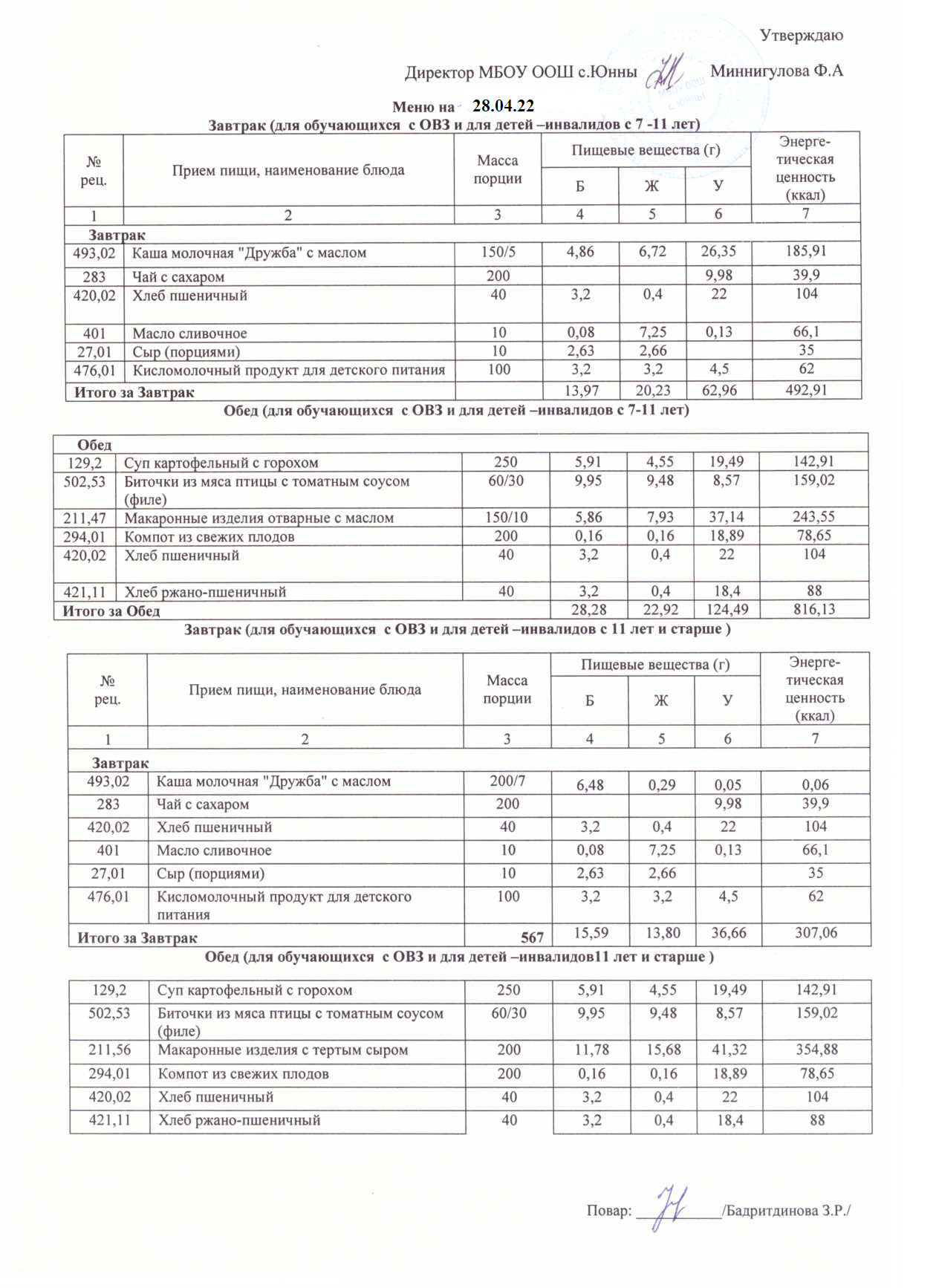 Меню ОВЗ 28.04.22
