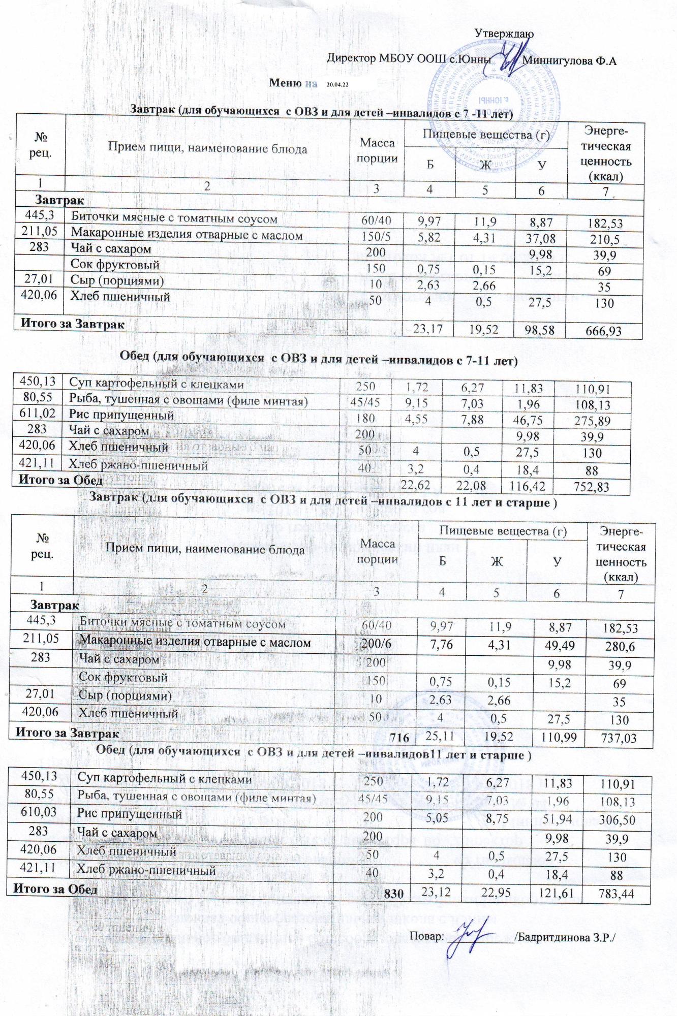 Меню ОВЗ 20.04.22