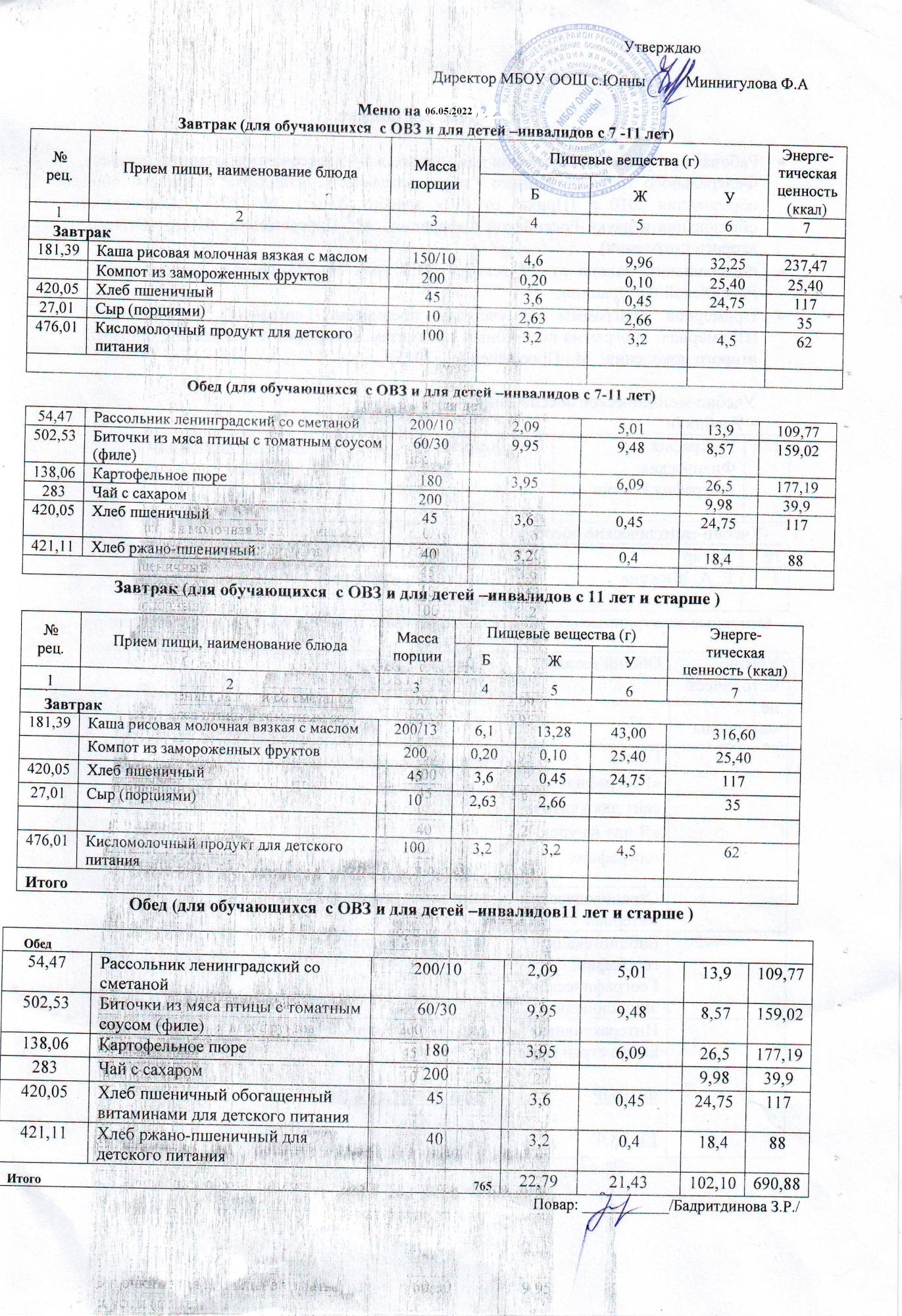 Меню ОВЗ 06.05.22