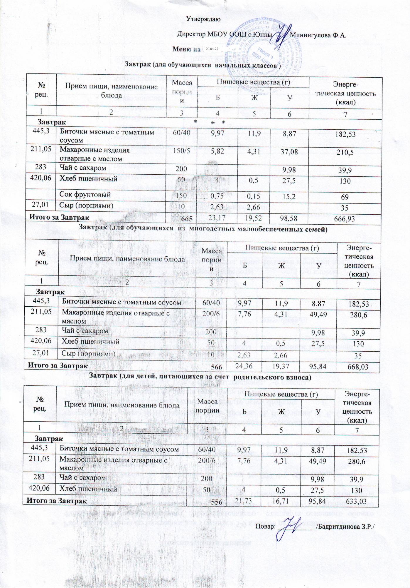 Меню 20.04.22