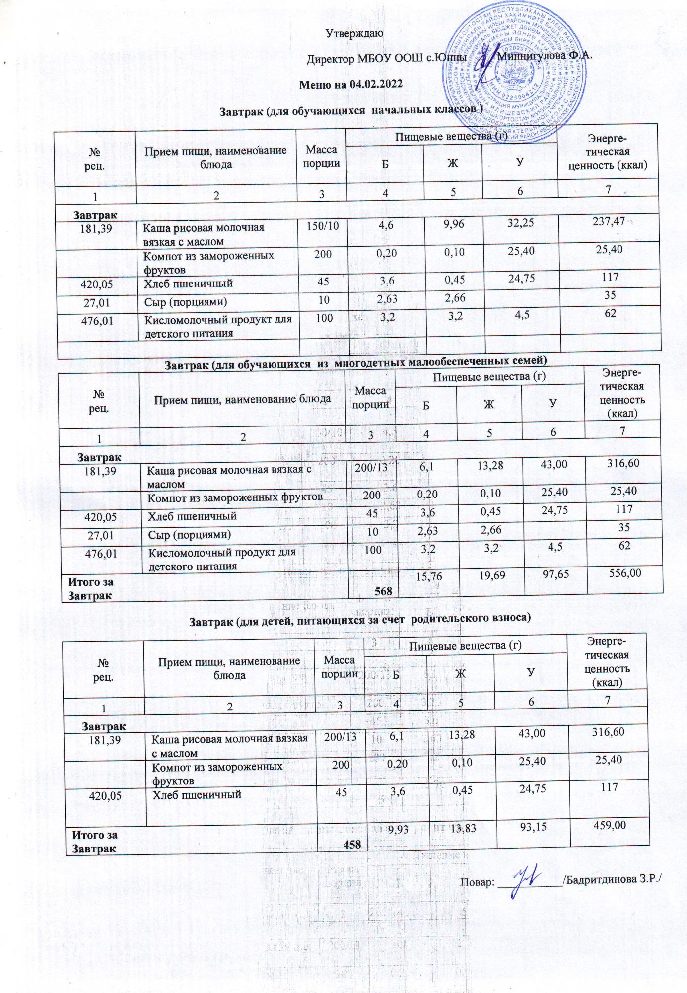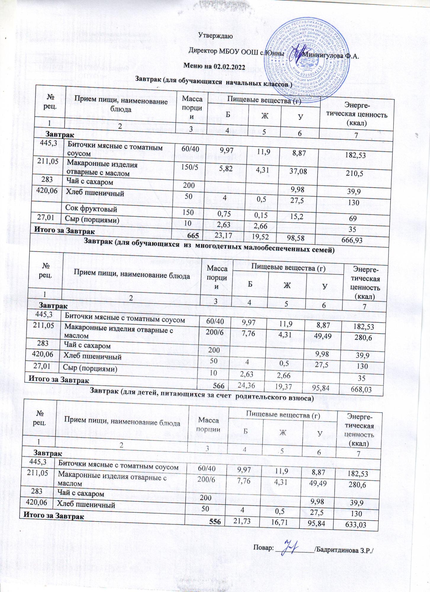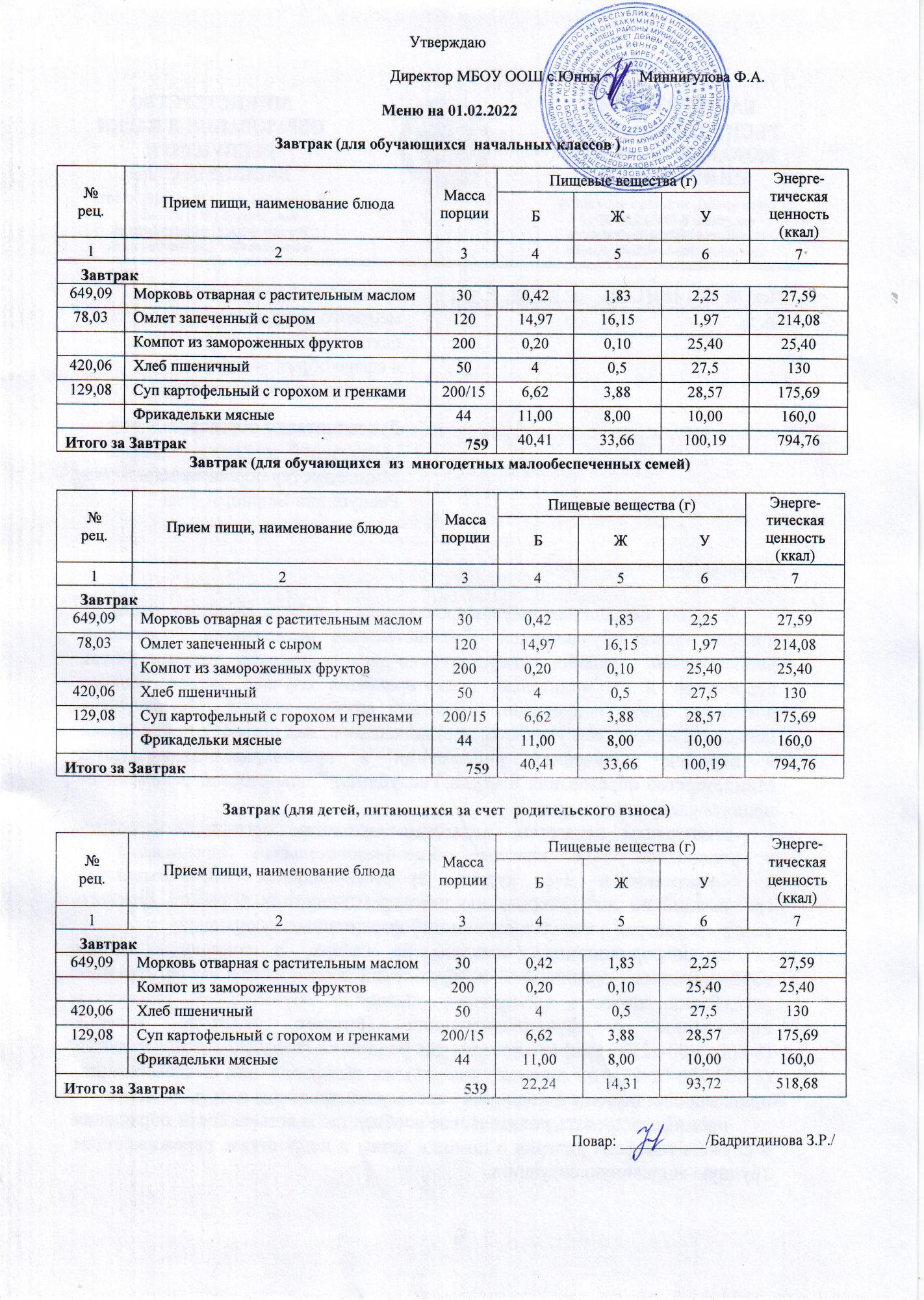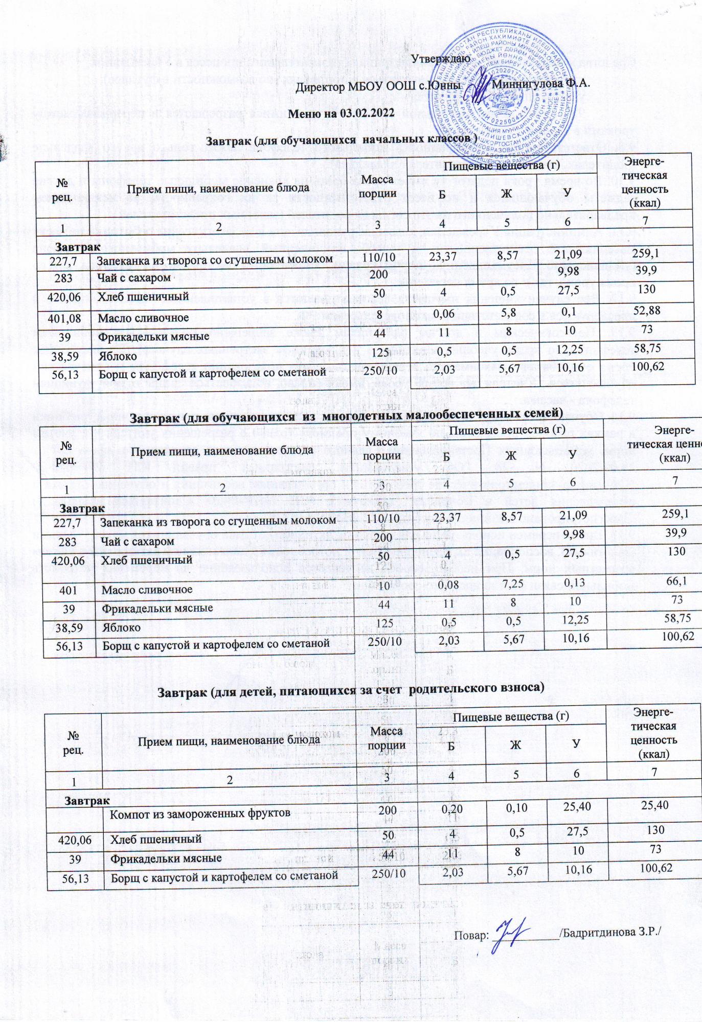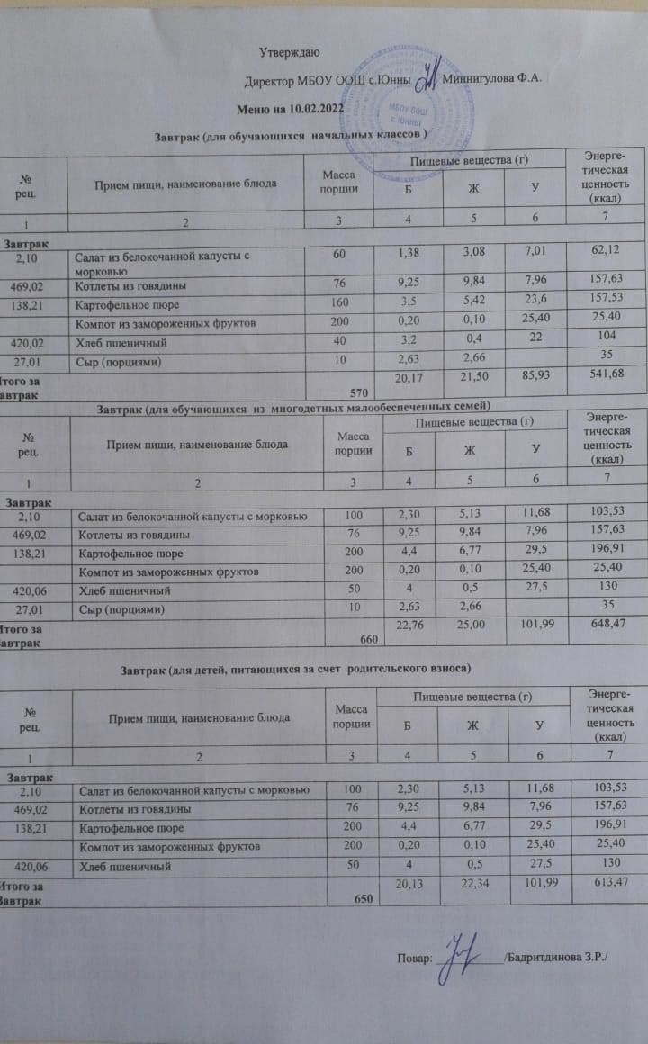 меню 03.02.2022