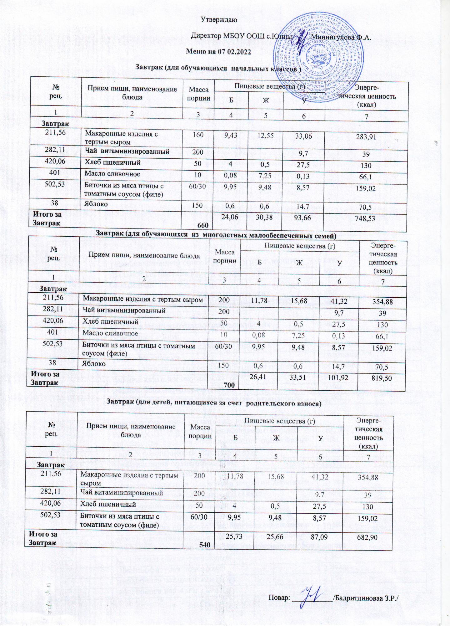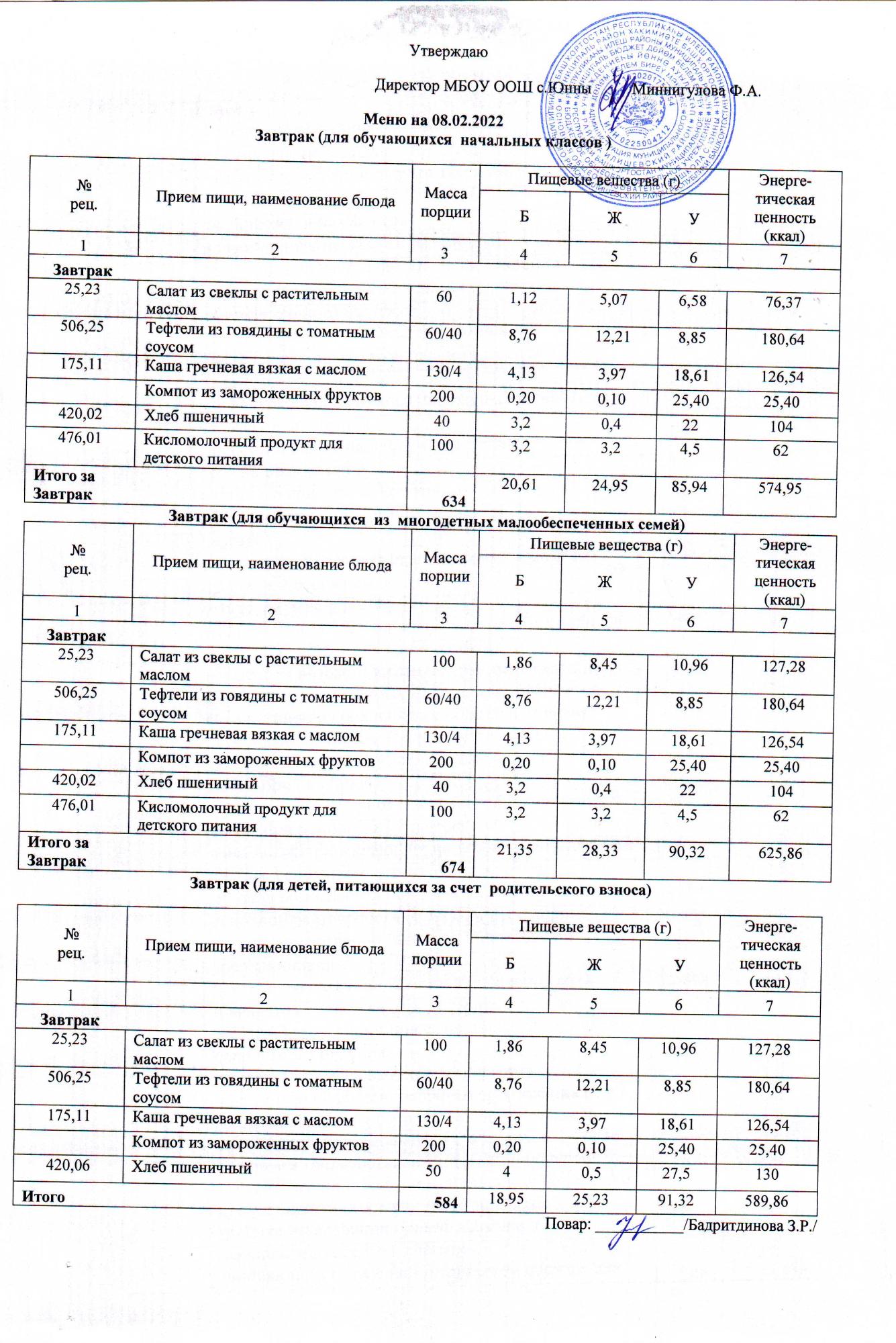 Меню 08.02.2022