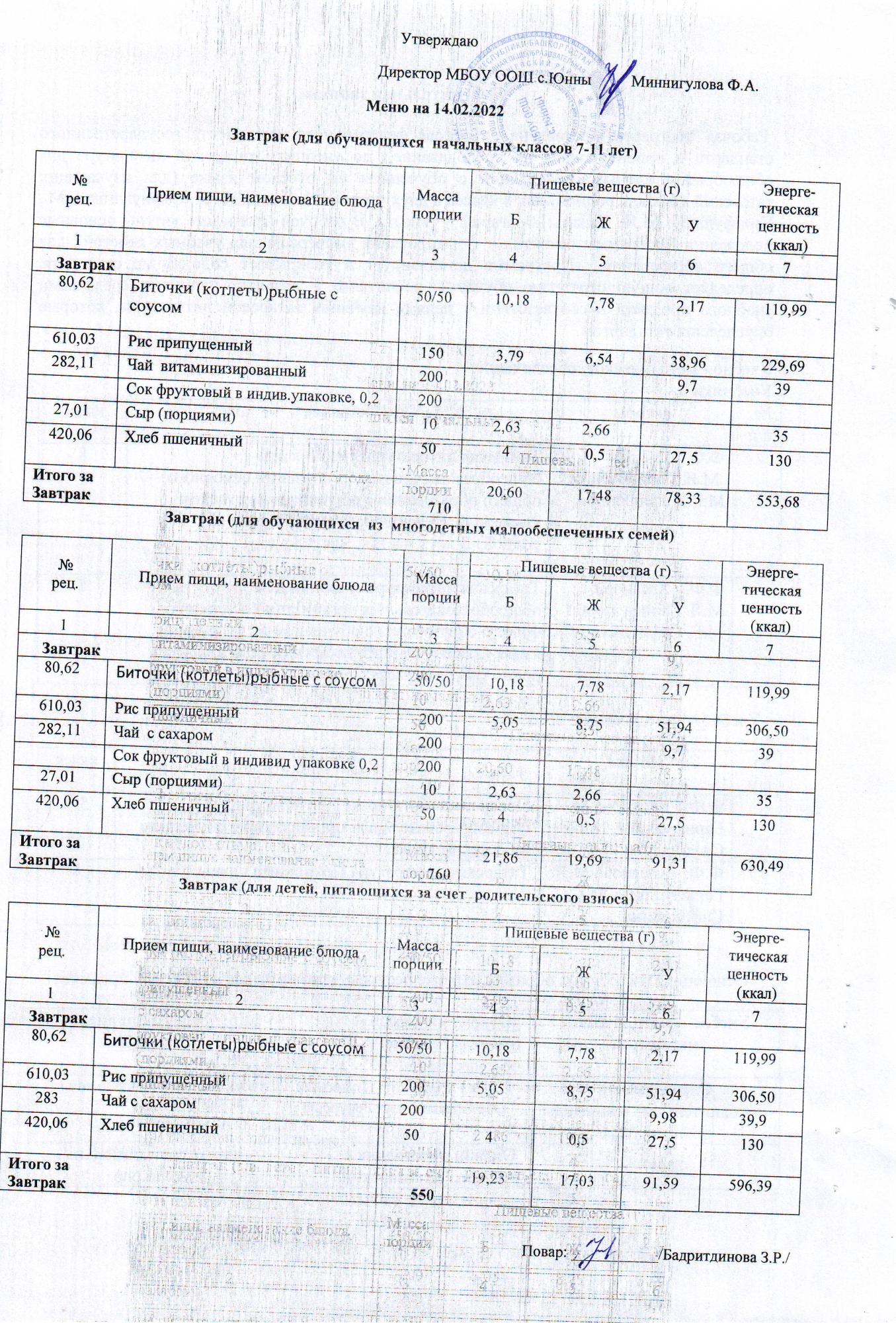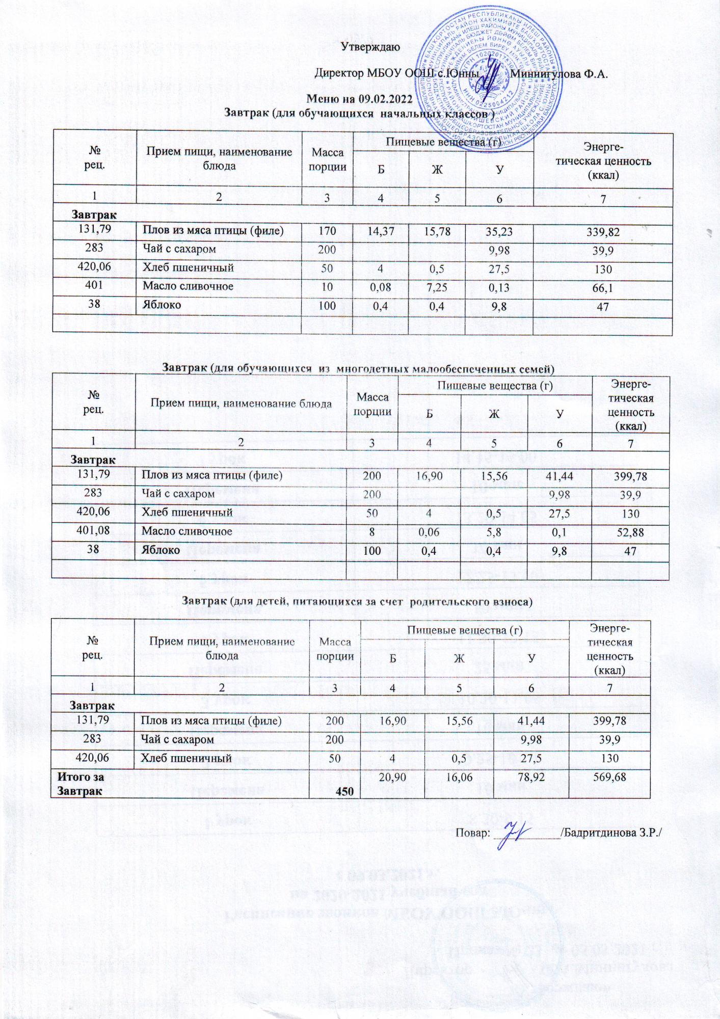 Меню 09.02.2022