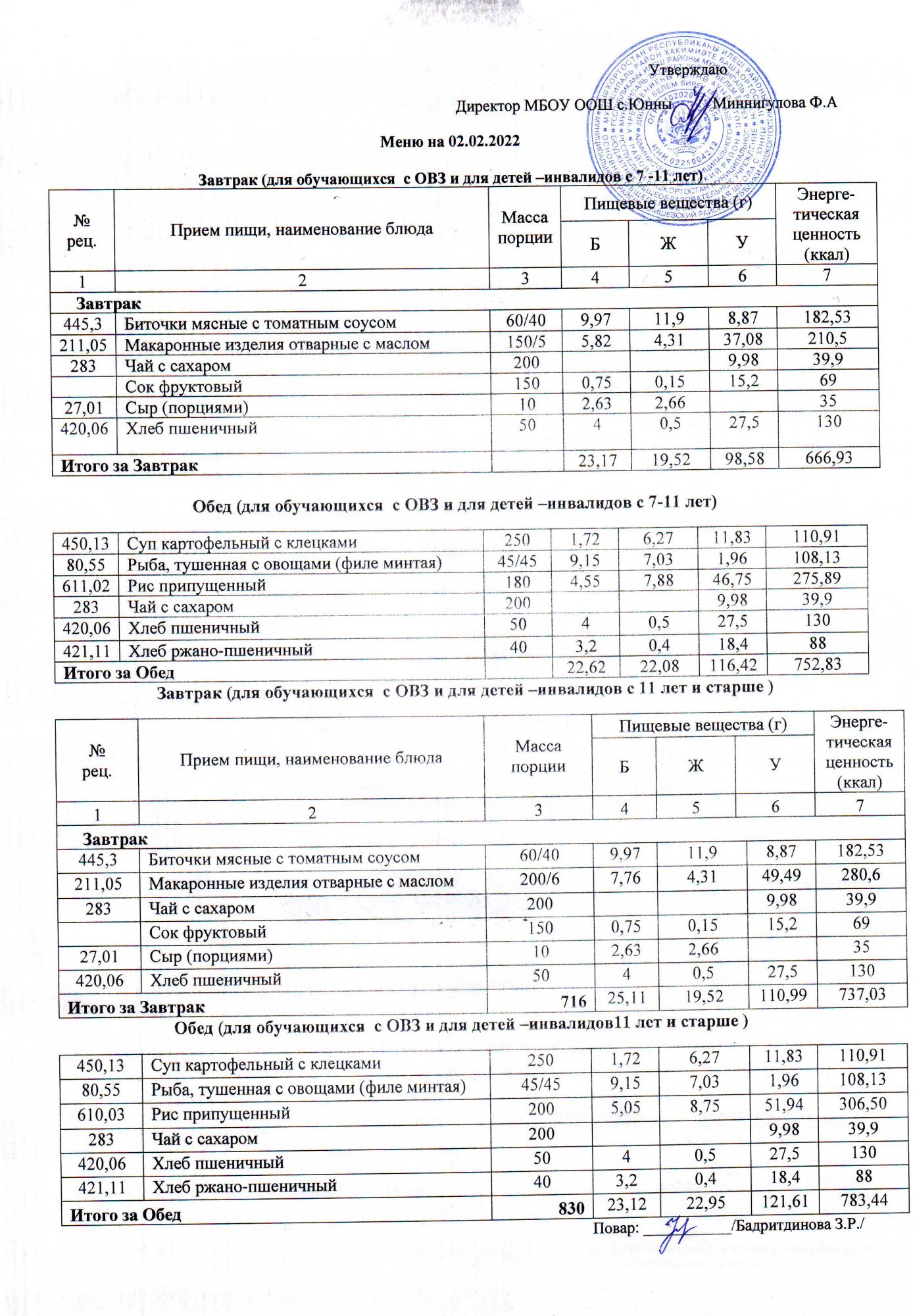 Меню ОВЗ 02.02.2022