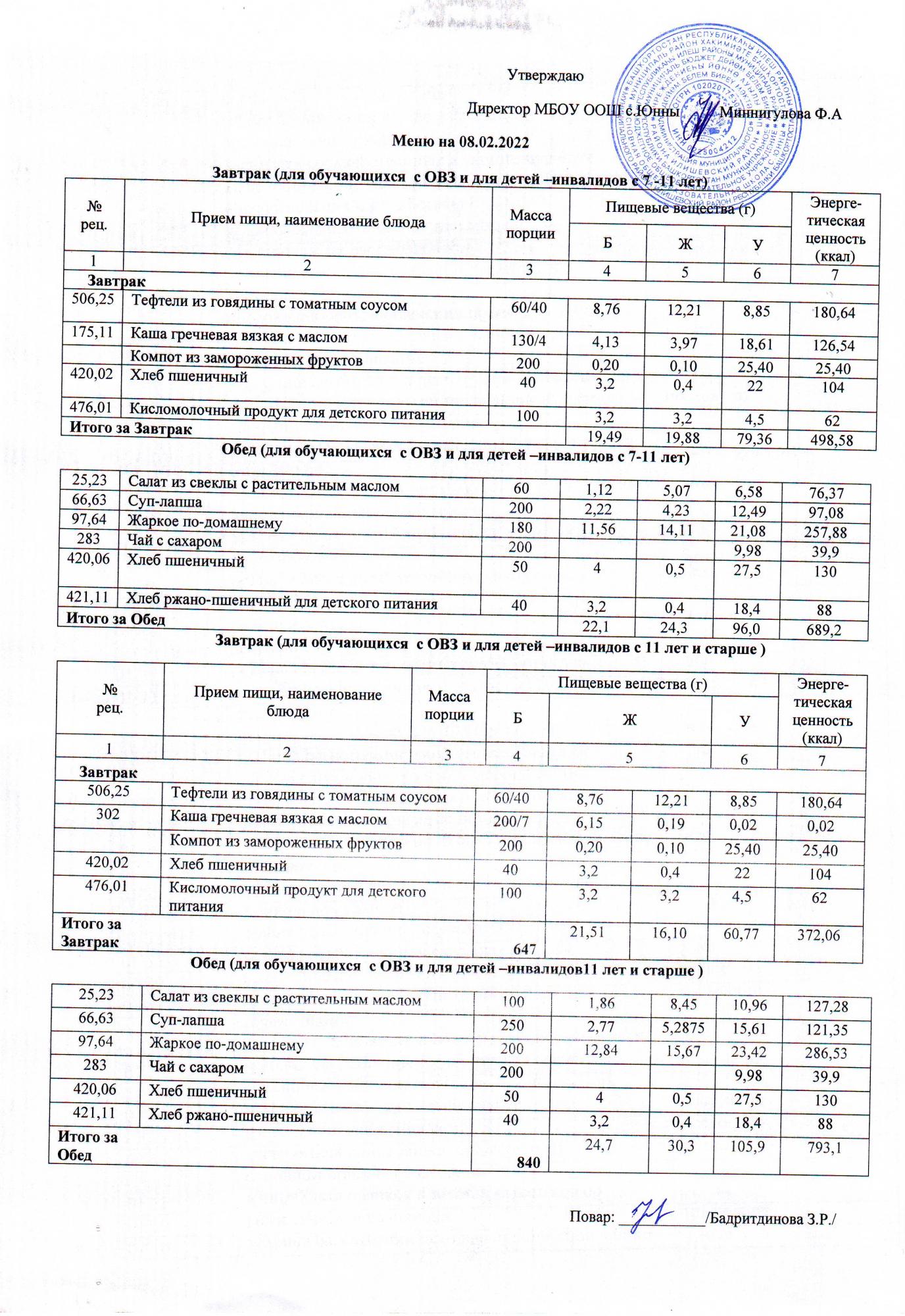 Меню ОВЗ 08.02.22