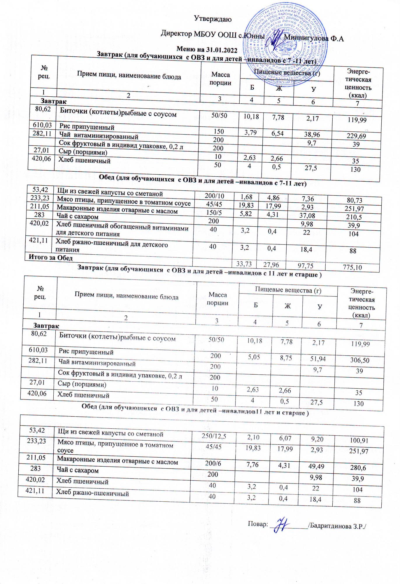 Меню ОВЗ 31.01.22