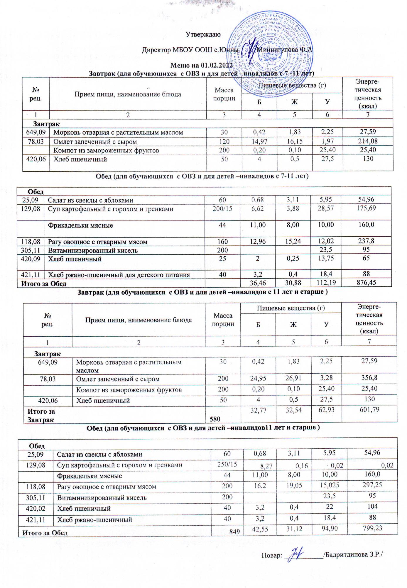 Меню ОВЗ 01.02.2022