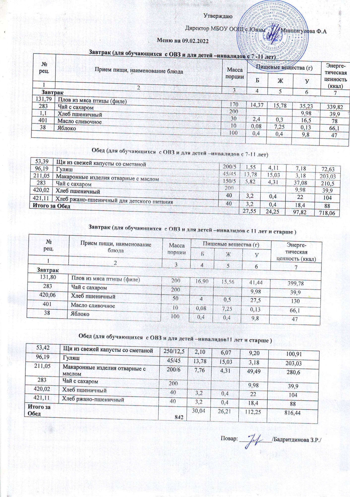 меню ОВЗ 09.02.22