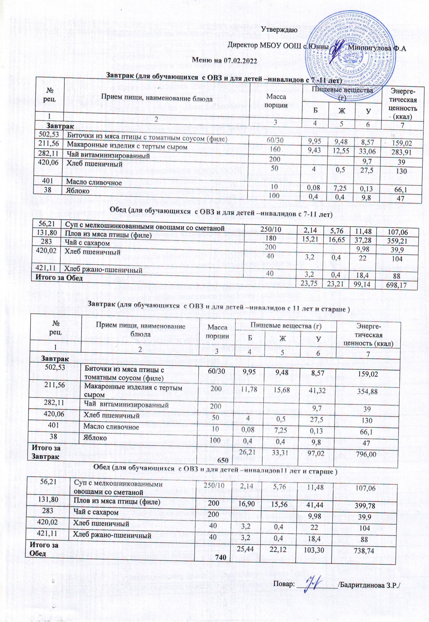 Меню ОВЗ 07.02.22