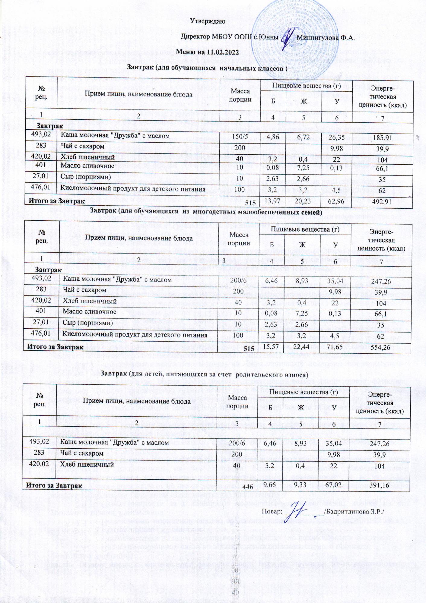 Меню 11.02.22