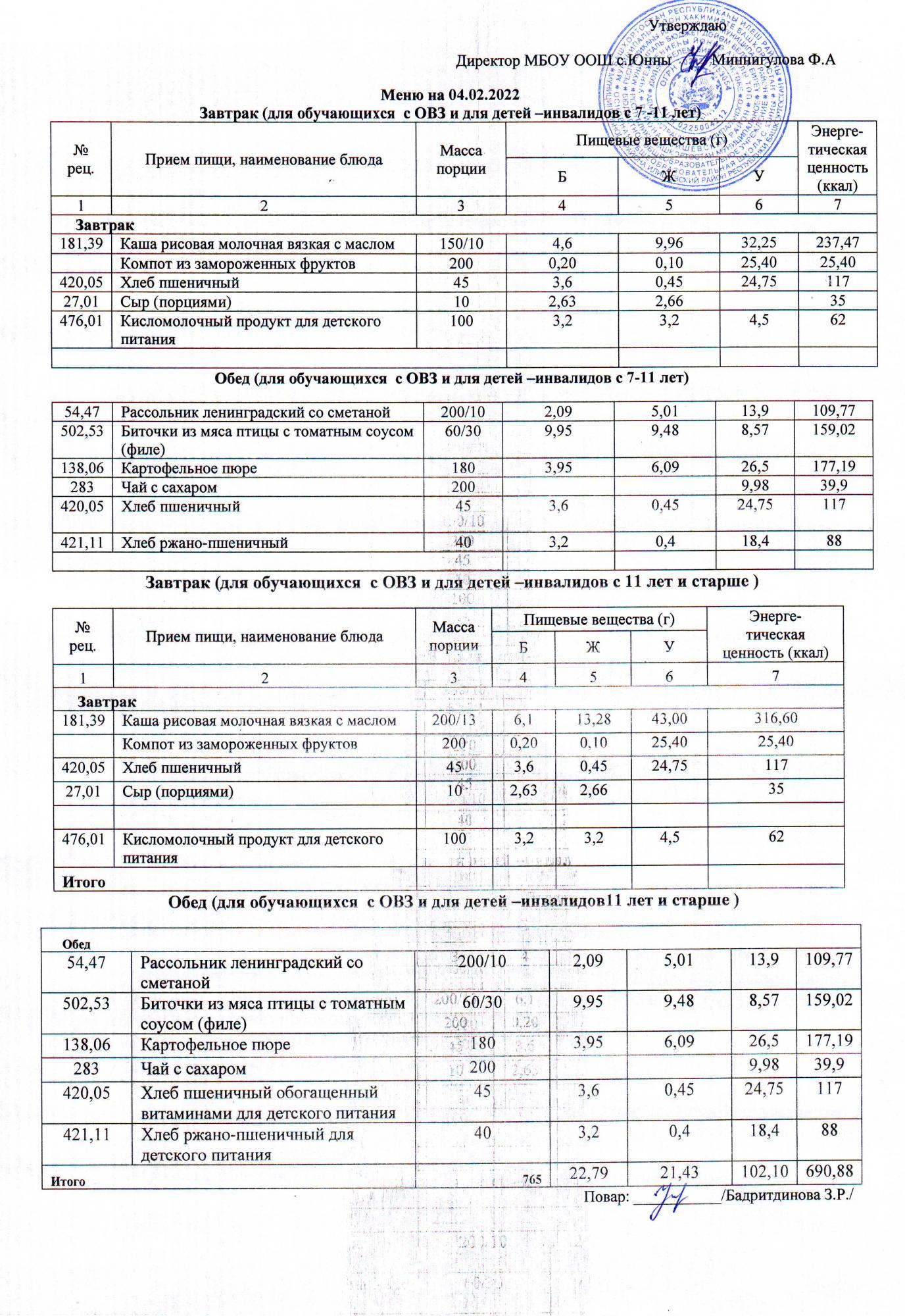 Меню ОВЗ 04.02.22