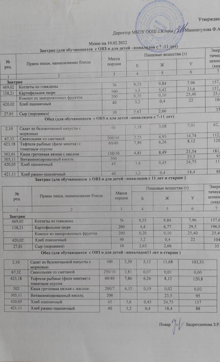 Меню ОВЗ 10.02.22