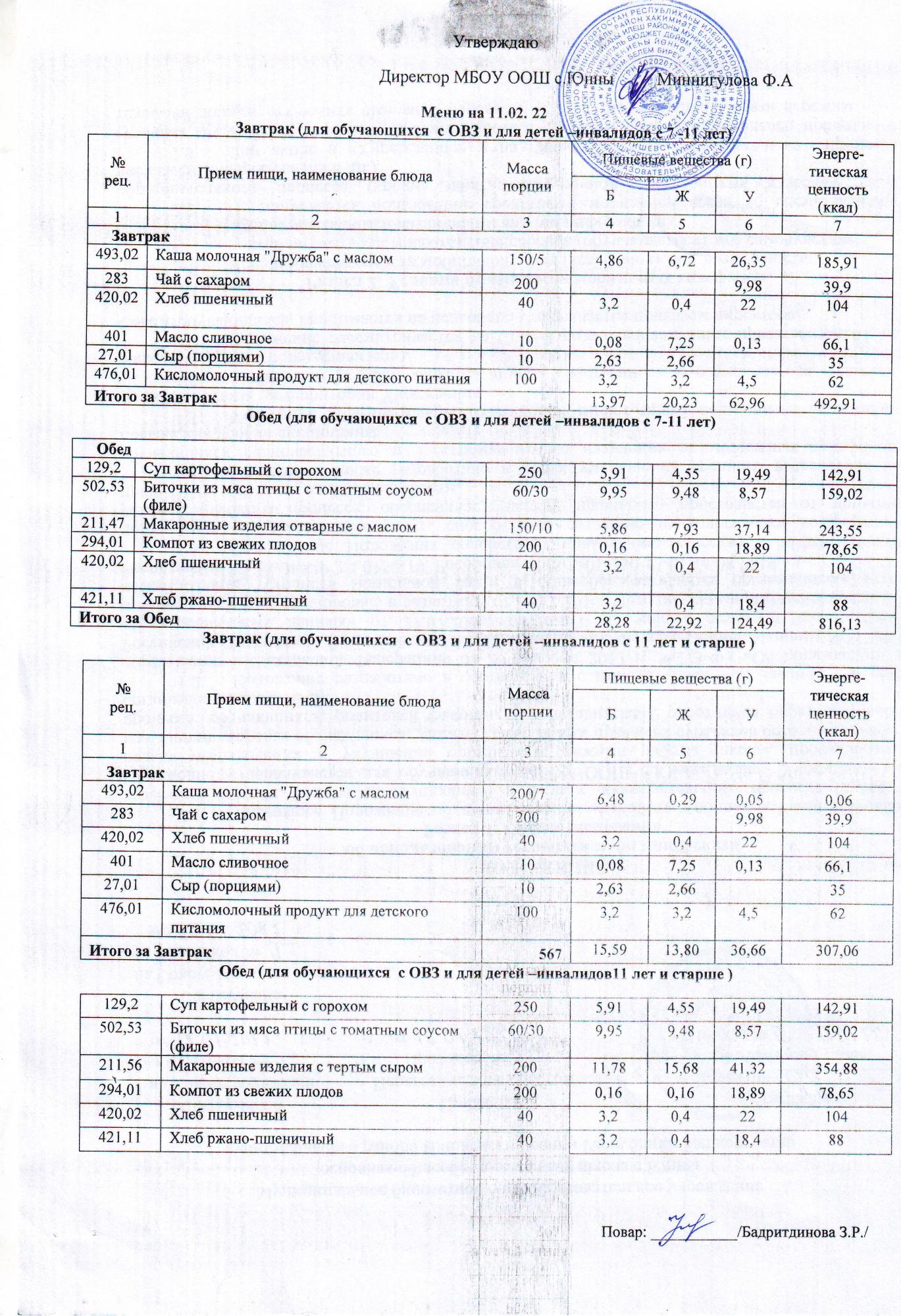 Меню ОВЗ 11.02.22